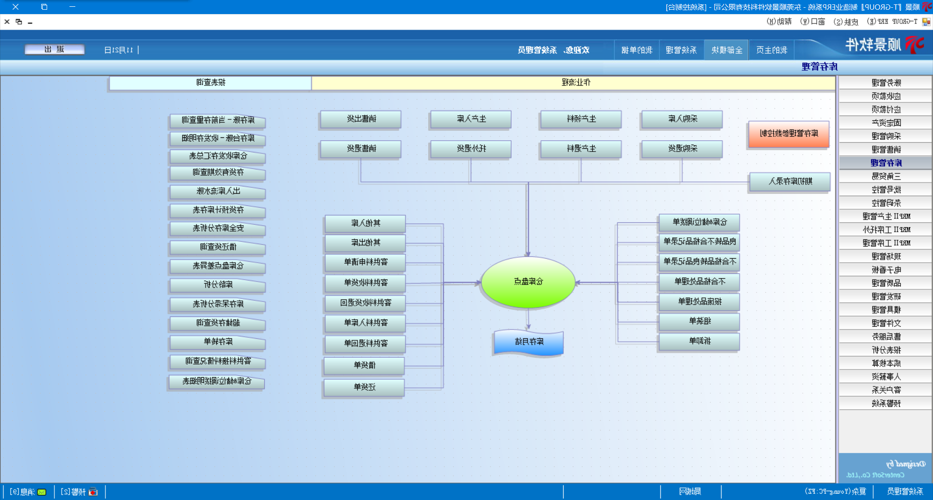 3. 存货盘点管理﹐可依仓库﹑储位﹑批号进行盘点,可进行盘点明细表,盘点卡打印;